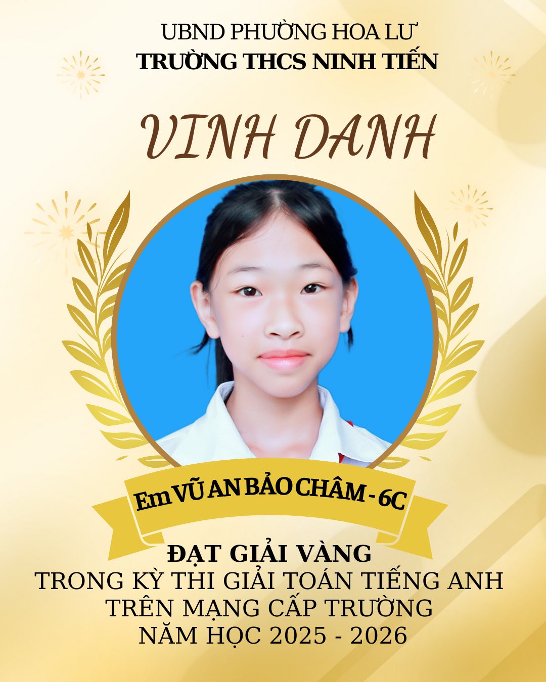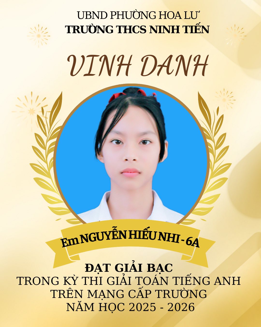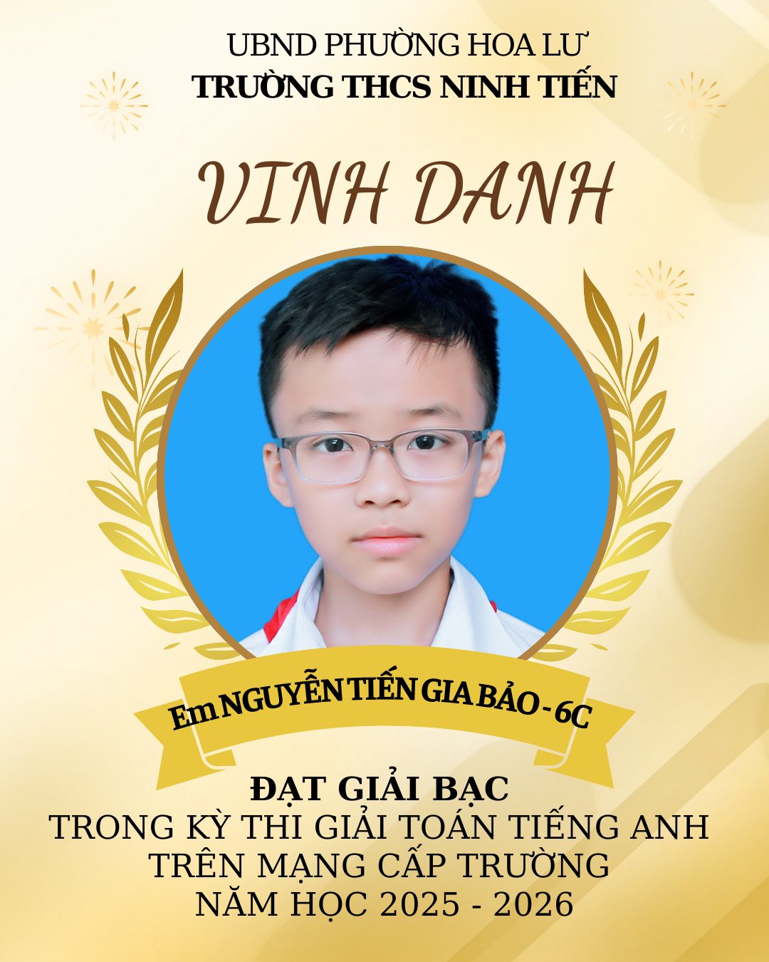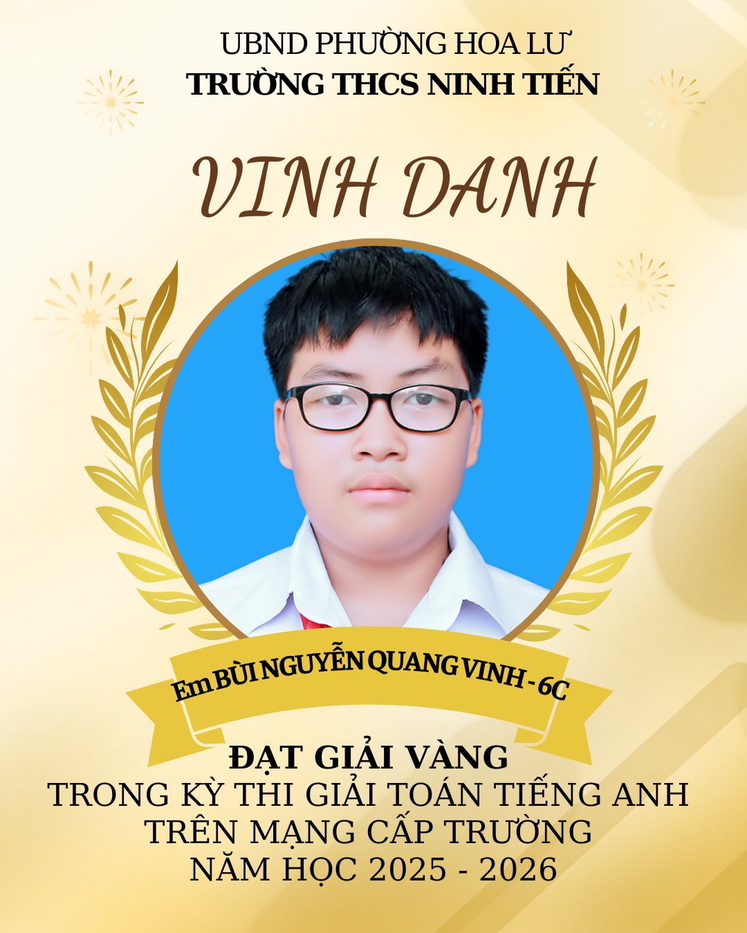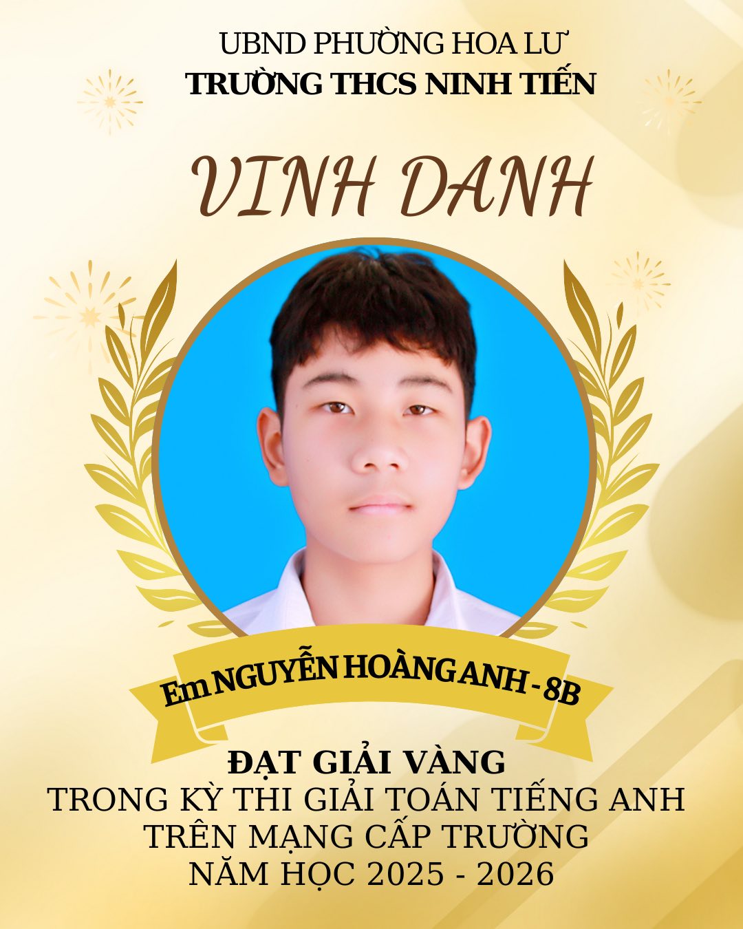 TRƯỜNG THCS NINH TIẾN VINH DANH HỌC SINH ĐẠT GIẢI VIOLYMPIC TOÁN TIẾNG VIỆT VÀ TOÁN TIẾNG ANH CẤP TRƯỜNG