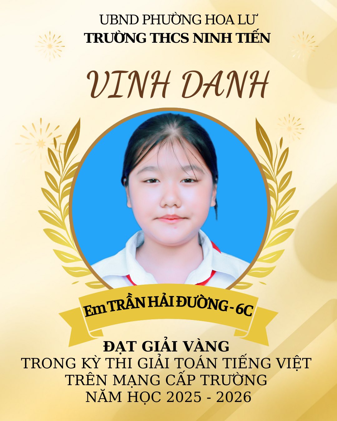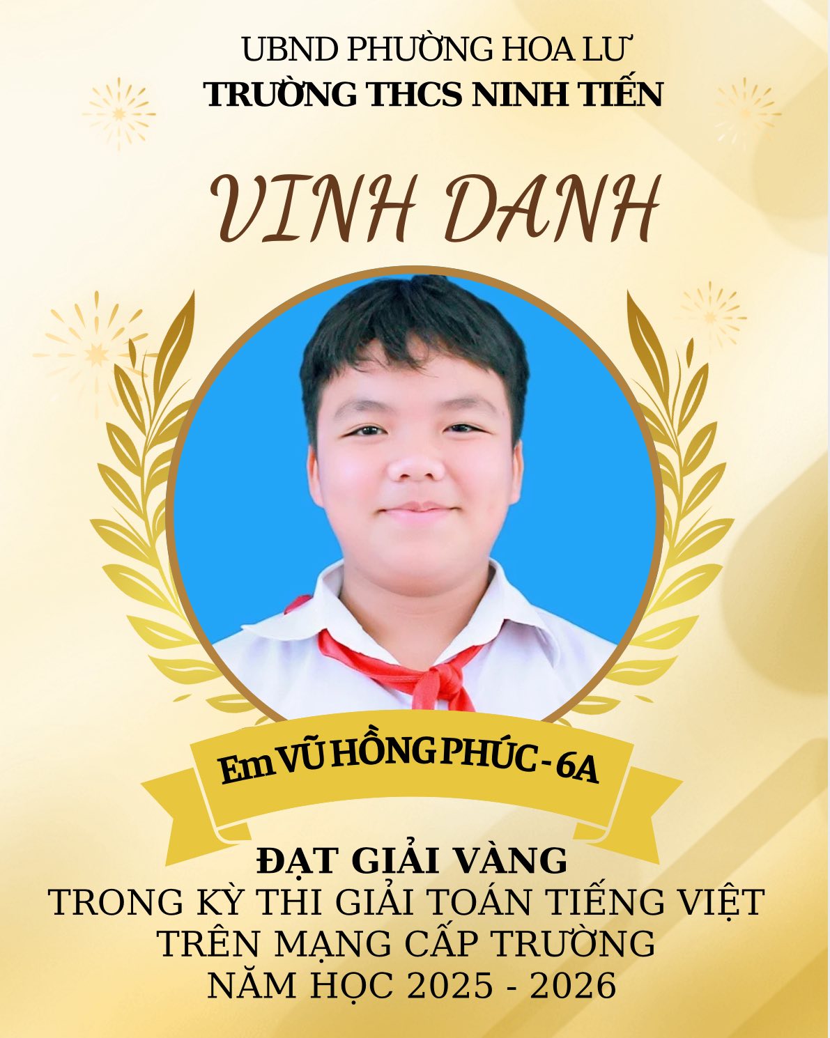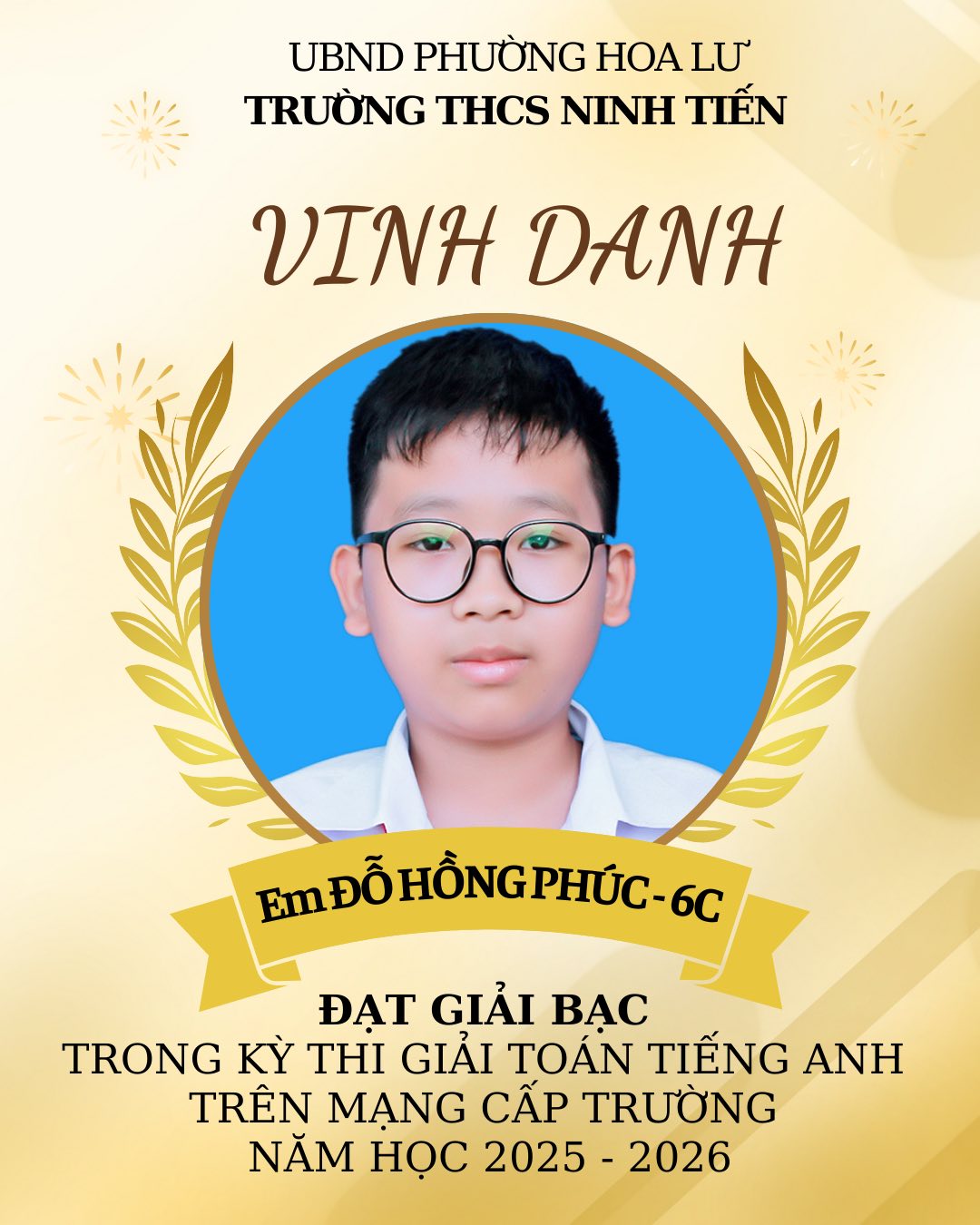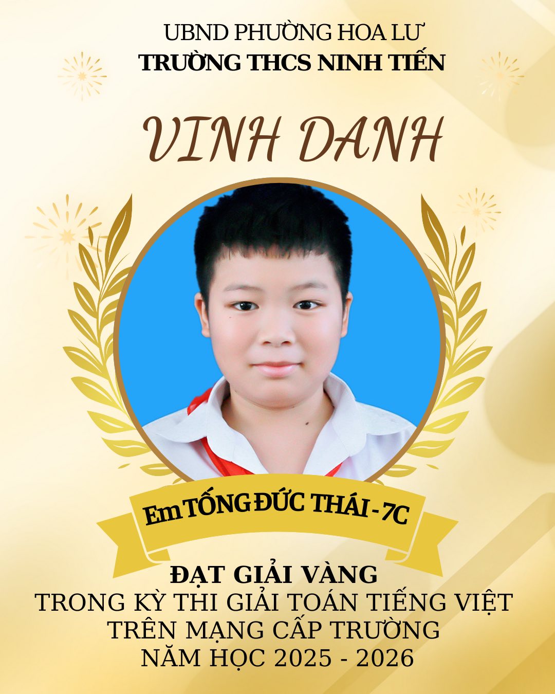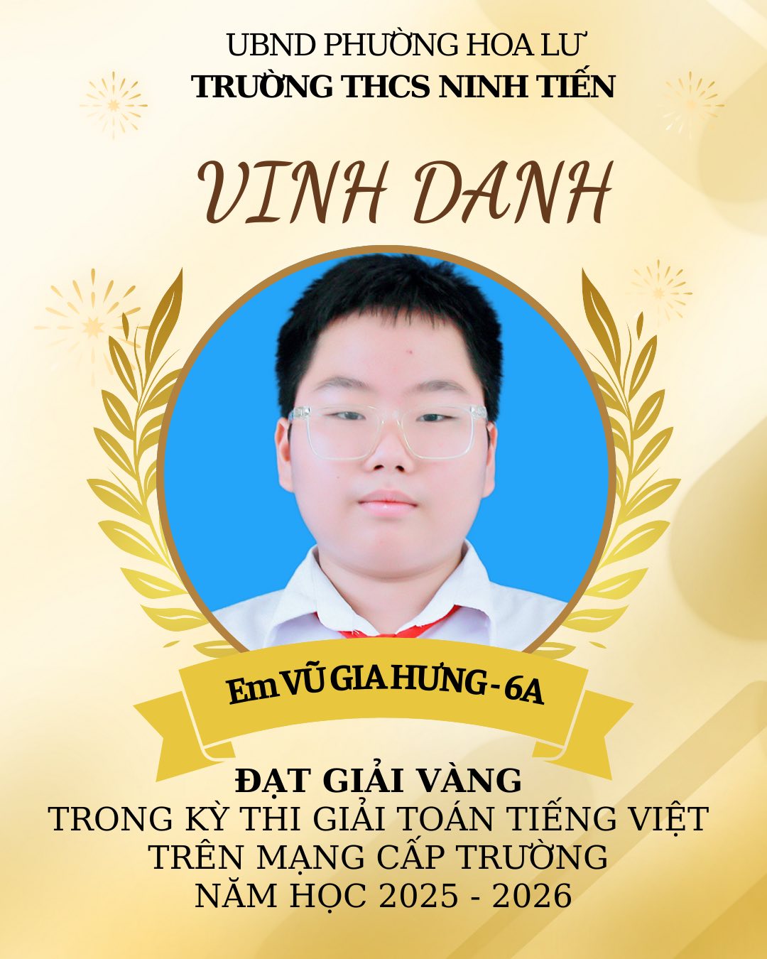 TRƯỜNG THCS NINH TIẾN VINH DANH HỌC SINH ĐẠT GIẢI VIOLYMPIC TOÁN TIẾNG VIỆT VÀ TOÁN TIẾNG ANH CẤP TRƯỜNG