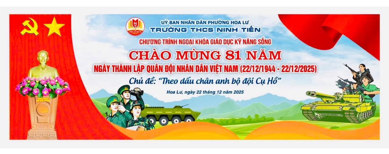 Trường THCS Ninh Tiến phối hợp với Ban Chỉ huy Phòng thủ Khu vực 2 Tam Điệp tổ chức thực hiện chương trình ngoại khóa giáo dục kĩ năng sống chào mừng 81 năm ngày thành lập Quân đội nhân dân Việt Nam.