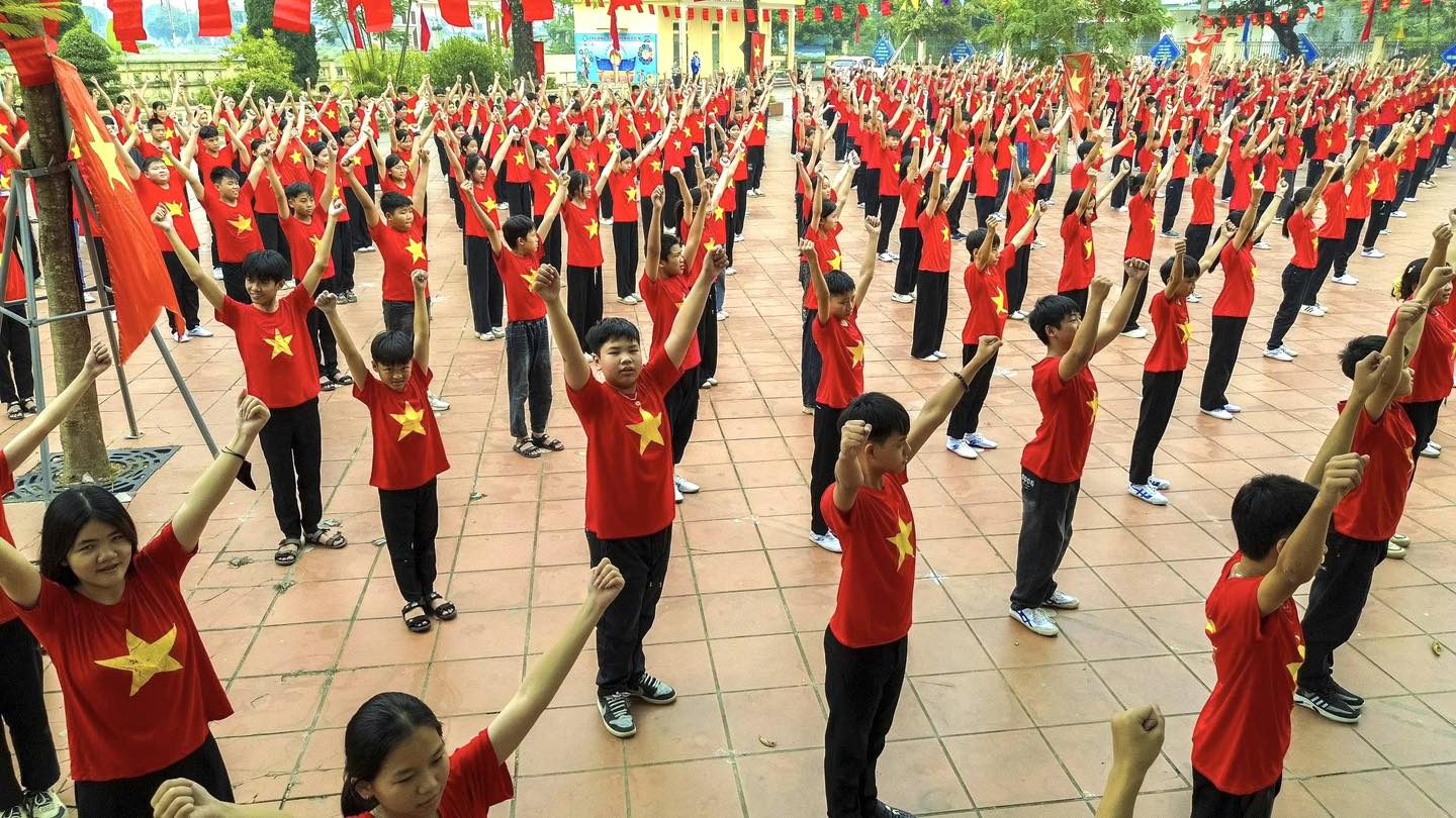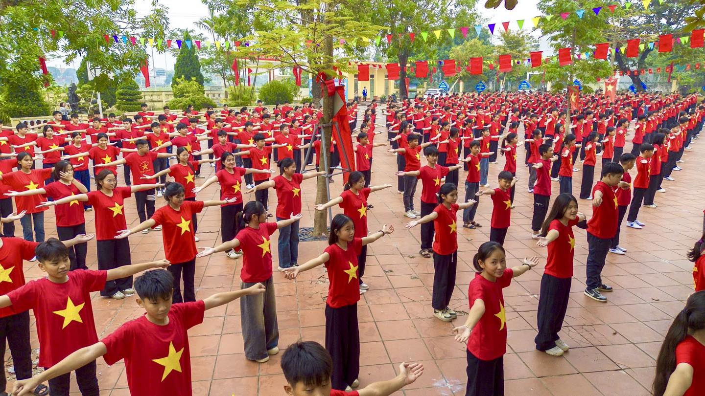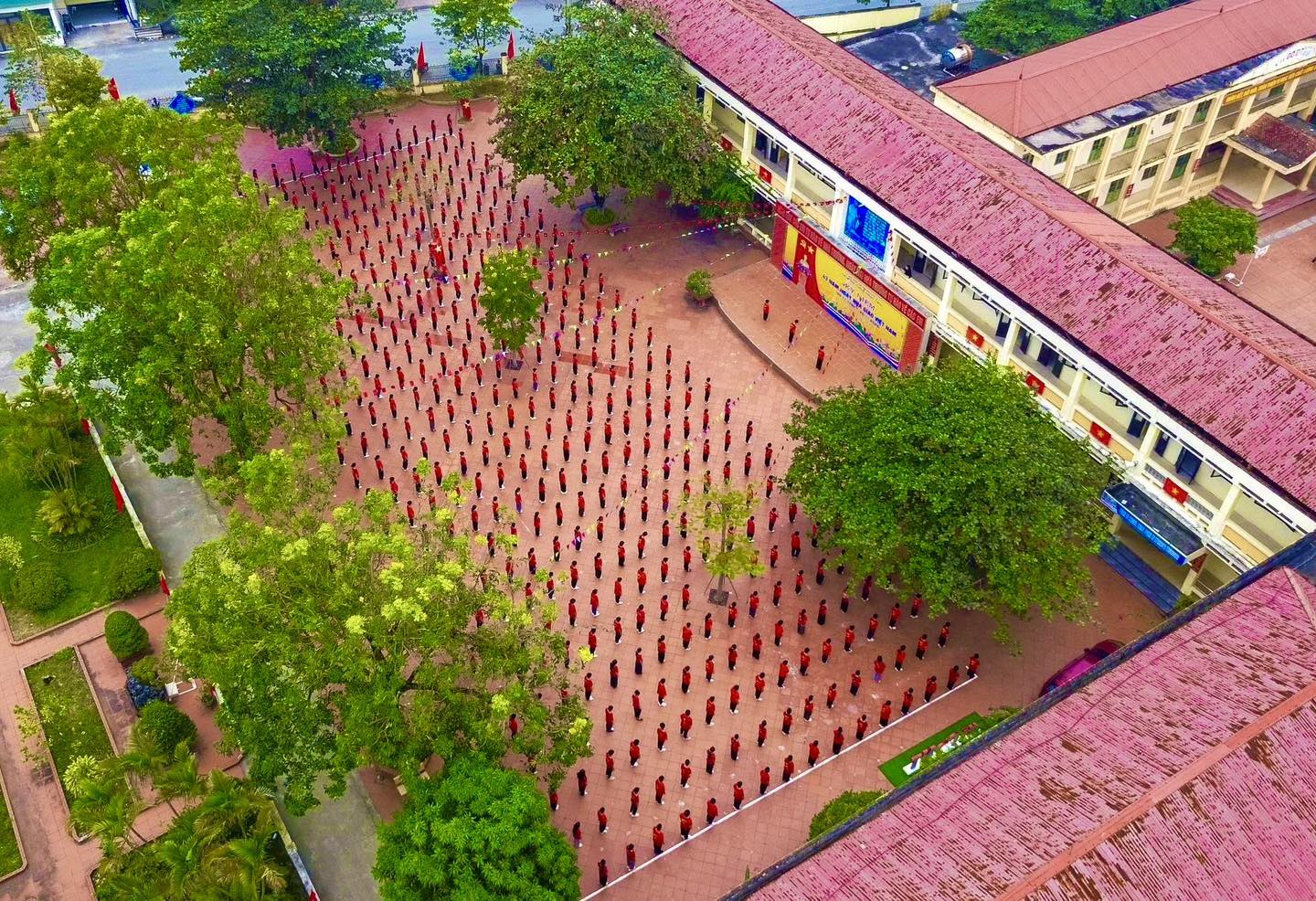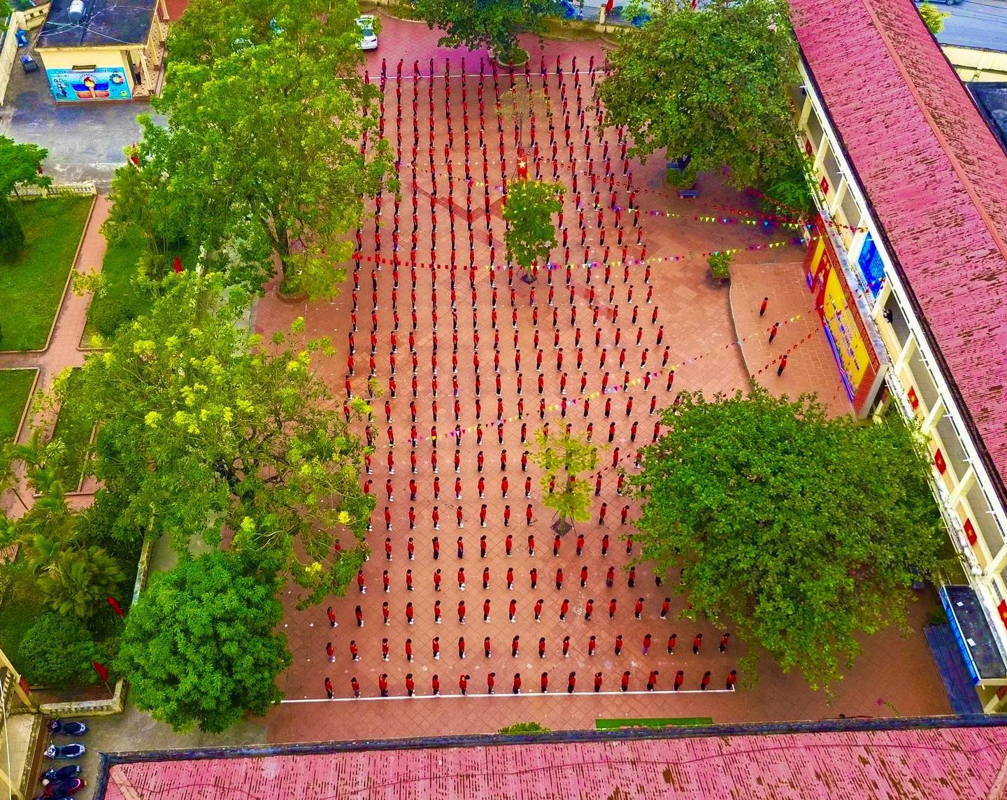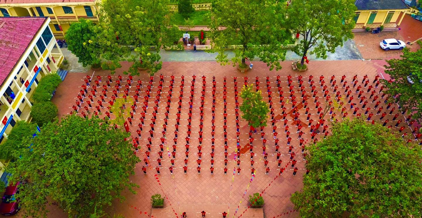 Màn biểu diễn võ thuật Việt Nam thật cuốn hút bởi sự uyển chuyển, mạnh mẽ và tinh thần thượng võ của 476 em HS trường THCS Ninh Tiến nhân dịp kỷ niệm 43 năm ngày Nhà giáo Việt Nam.