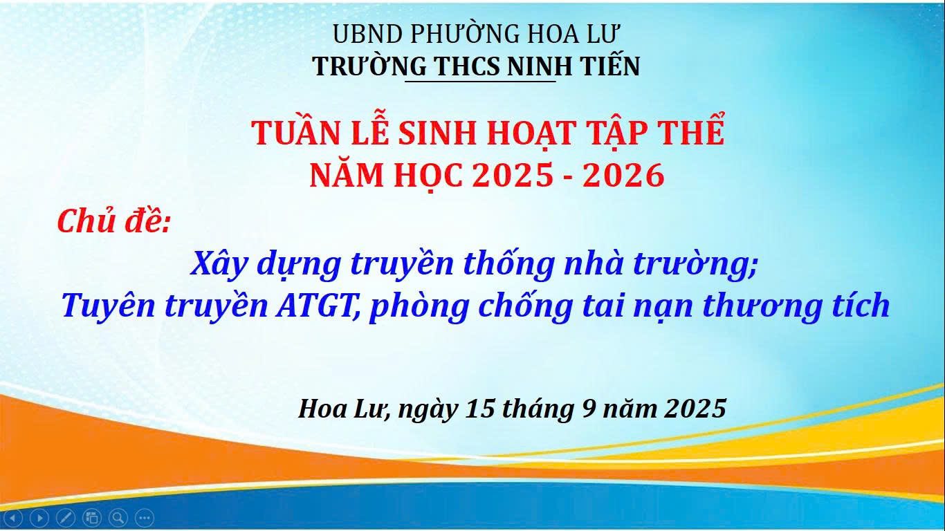 Thực hiện Công văn số 716/SGDĐT- CTHSSV ngày 5/9/2025 của Sở GDĐT Ninh Bình về hướng dẫn tổ chức “Tuần sinh hoạt công dân-học sinh, sinh viên năm học 2025-2026”, ngày 15/9 trường THCS Ninh Tiến tổ chức tuần lễ sinh hoạt đầu năm học với chủ đề: “Xây dựng thống nhà trường, tích cực tuyền truyền thực hiện ATGT, phòng chống tai nạn thương tích”